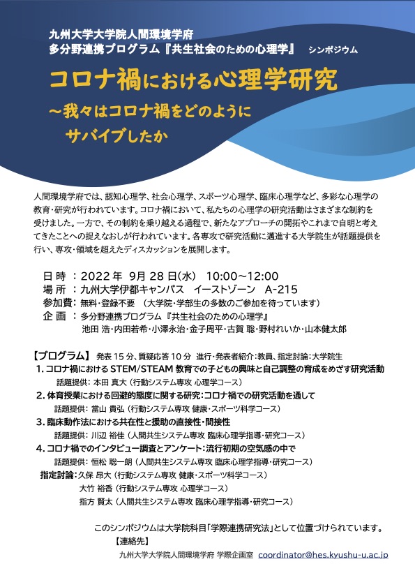 【連絡先】学際企画室 coordinator@hes.kyushu-u.ac.jp