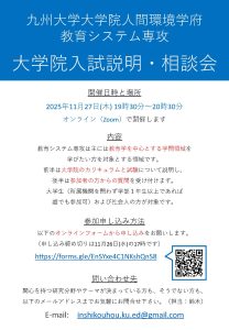 【11/27㈭開催】大学院入試説明・相談会(教育システム専攻)