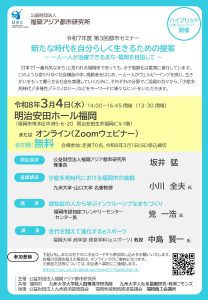 お知らせ 2026.02.16福岡アジア都市研究所は、令和7年度第3回都市セミナー「新たな時代を自分らしく生きるための提案 ~ 一人一人が活躍できるまち・福岡を目指して ~」を開催致します。